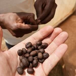 Beide Kaffees stammen aus kleinen Familienfarmen Ugandas, die in Mischkultur und überwiegend von Hand arbeiten.